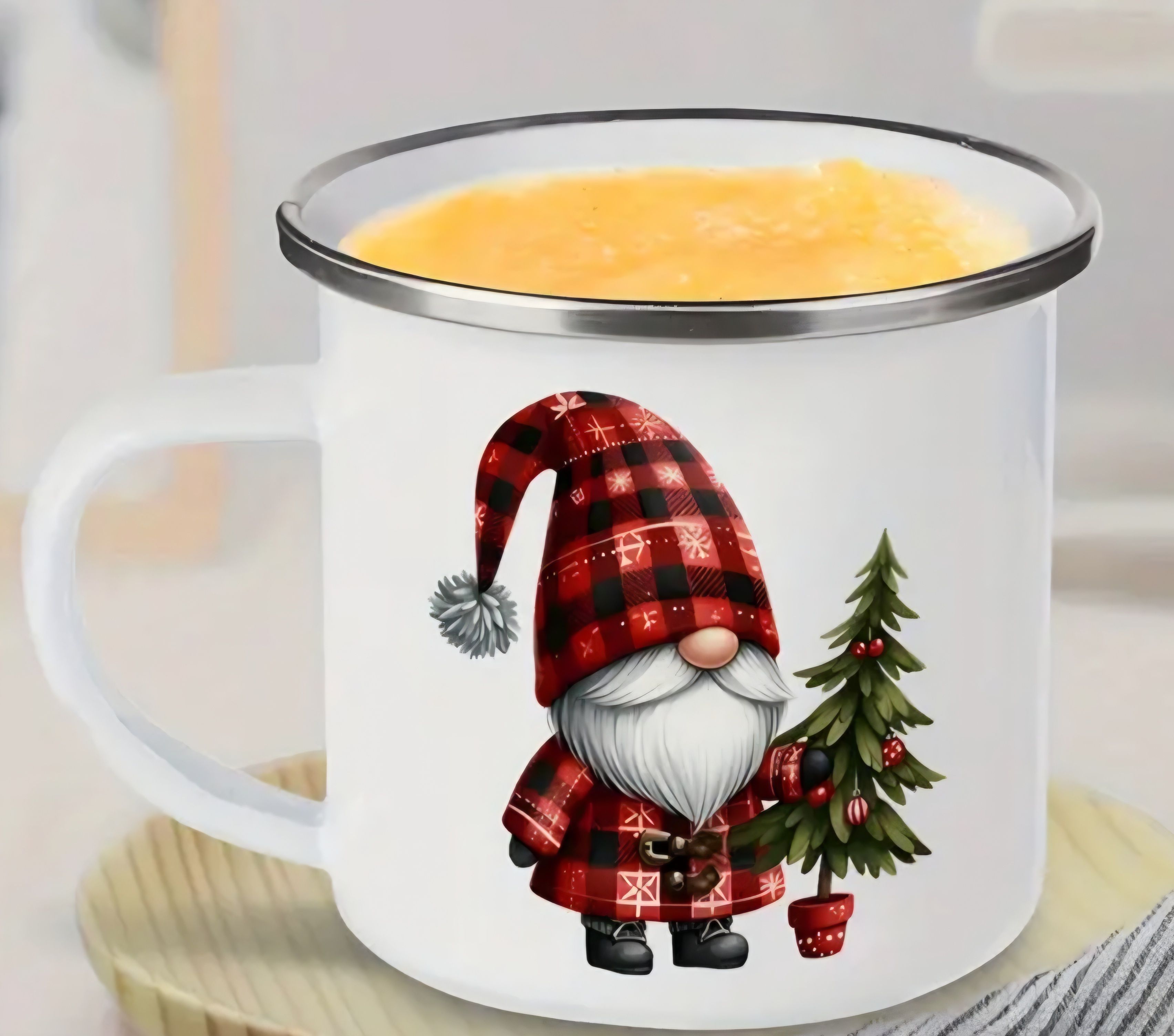 Each set includes: A delightful enamel Gnome mug, a co-ordinated set of coasters, a bag of Cadbury Hot Chocolate Powder, and a bag of fun pillowy marshmallows. It's truly the perfect treat for the holiday season. GF friendly.