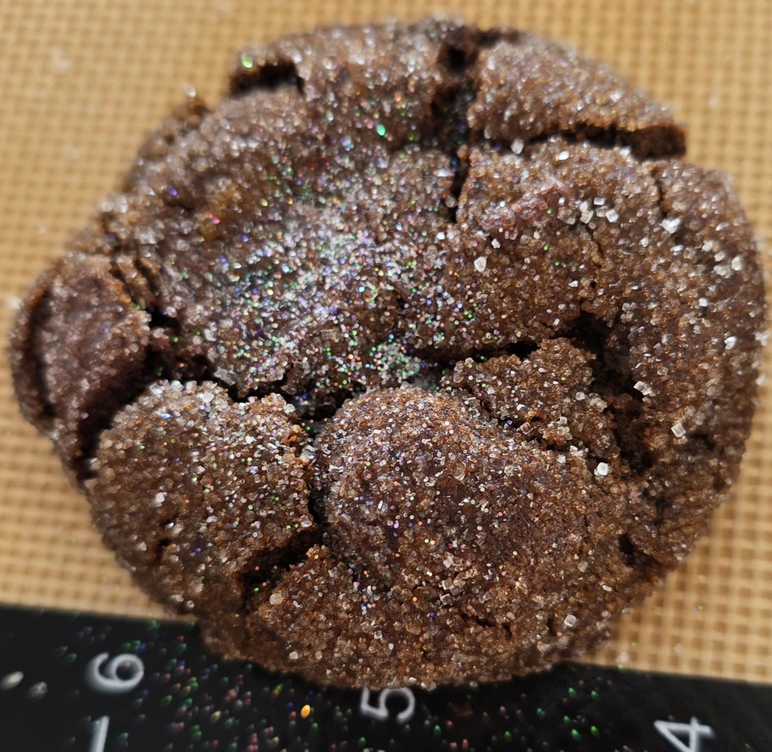 This cookie features a cracked and crispy exterior, with a soft and chewy interior. It offers the classic taste of Christmas Gingerbread, enhanced by delicious chocolate inside, creating a comforting and warm experience with every bite!